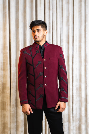 Contemporary semi open Jodhpuri adorned with embroiderry work on sleeves and body made from polynosic fabric