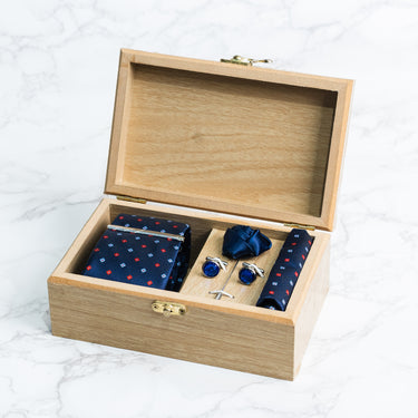 Navy Blue tie with Red and skyblue polka dots box set