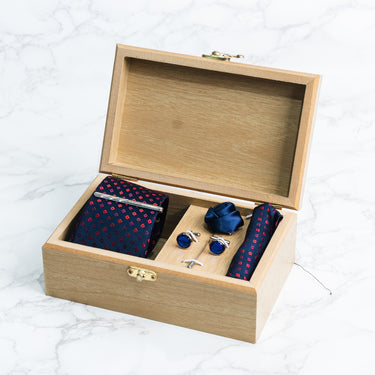 Navy Blue tie with Red polka dots box set